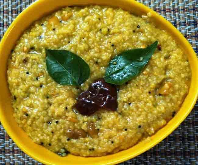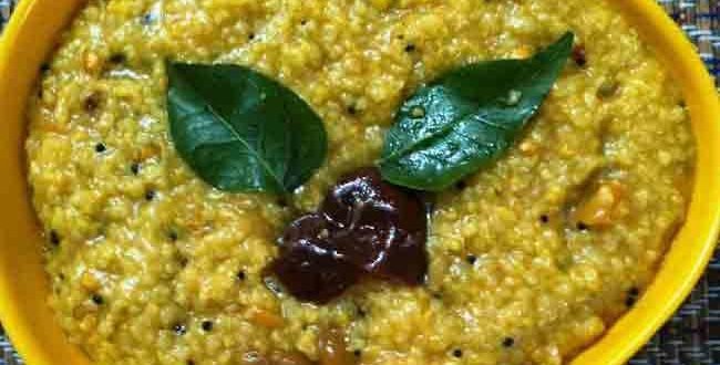 चावल 1 कप, मूंग दाल 1 कप, इमली निम्बू के बराबर का, मूंगफली दो चम्मच, तिल का तेल तीन चम्मच, हल्दी 1/4 चम्मच, राई 1/2 चम्मच, उरद दाल एक चम्मच, लाल मिर्च 2, पानी 2 कप, हींग एक पिंच, कड़ी पत्ता 8 से दस, नमक स्वादानुसार।