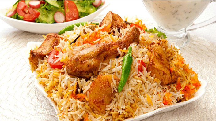 750 ग्राम बासमती चावल ( 1 घंटे के लिए पानी में भिगोया हुआ), आधा किलो चिकन हड्डियों के साथ, 250 ग्राम प्याज मोटे टुकड़ों मे कटी हुई, 150 ग्राम दही, चम्मच गरम मसाला, नमक, 1 छोटा चम्मच अजीनोमोटो, 3 नींबू का नींबू का रस, 100 मिलीलीटर दूध, 2 छोटा 200 ग्राम घी, 3 छोटा चम्मच लहसुन और अदरक का पेस्ट, डेढ़ छोटा चम्मच कसूरी मेथी, 3 छोटा चम्मच लाल मिर्च पाउडर, 1 छोटा चम्मच धनिया और जीरा पाउडर) डेढ छोटा चम्मच हल्दी पाउडर, दालचीनी, लौंग, जीरा, इलायची 10-15 हरी मिर्च, एक कप पुदीना पत्ती, एक कप कटा हुआ